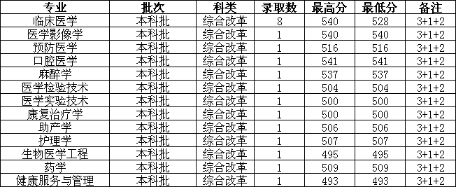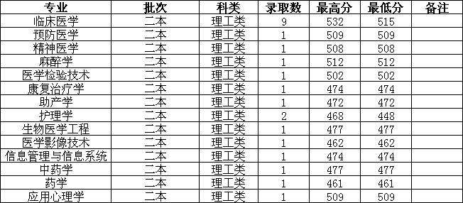 各专业录取分数情况如下: