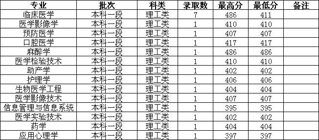 各专业录取分数如下: