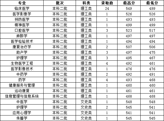 各专业录取情况如下: