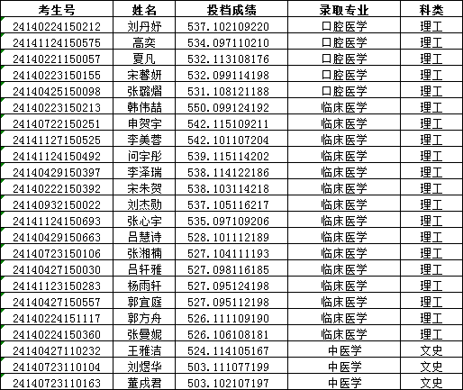 长治医学院2024年普通本科招生录取名单(山西省国家专项一批,山西省地方专项一批)
