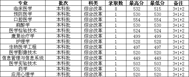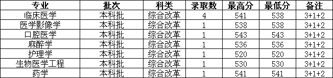 各专业录取分数如下: