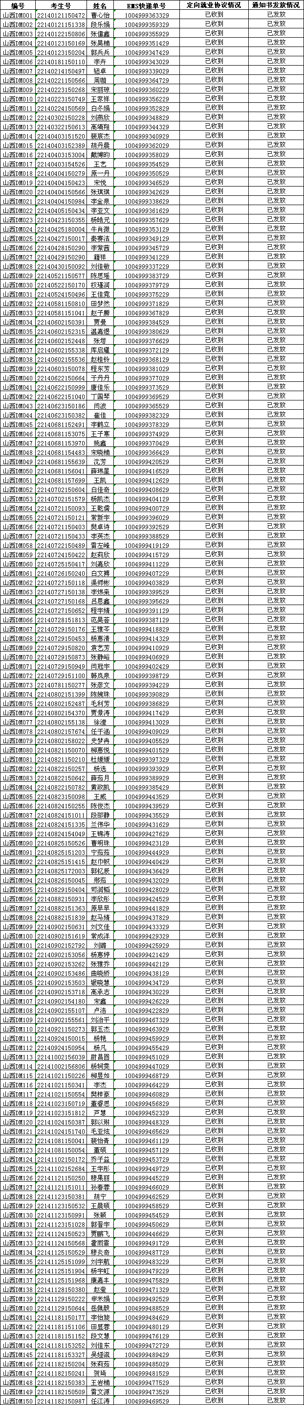 定向就业协议收到及录取通知书发放情况