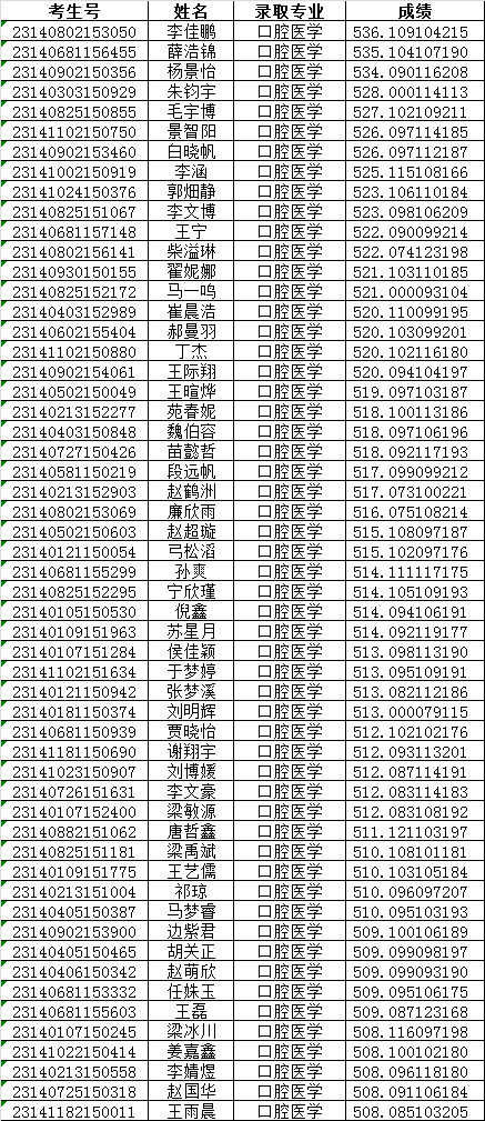 长治医学院2023年山西省本科一B批次(理工类)录取名单