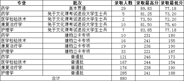 长治医学院2023年专升本分批次分专业录取分数情况