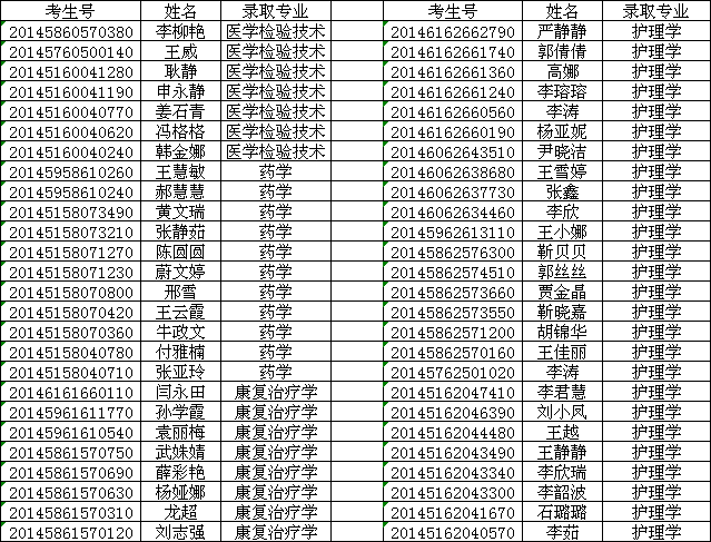 长治医学院2020年专升本建档立卡专项一批录取名单