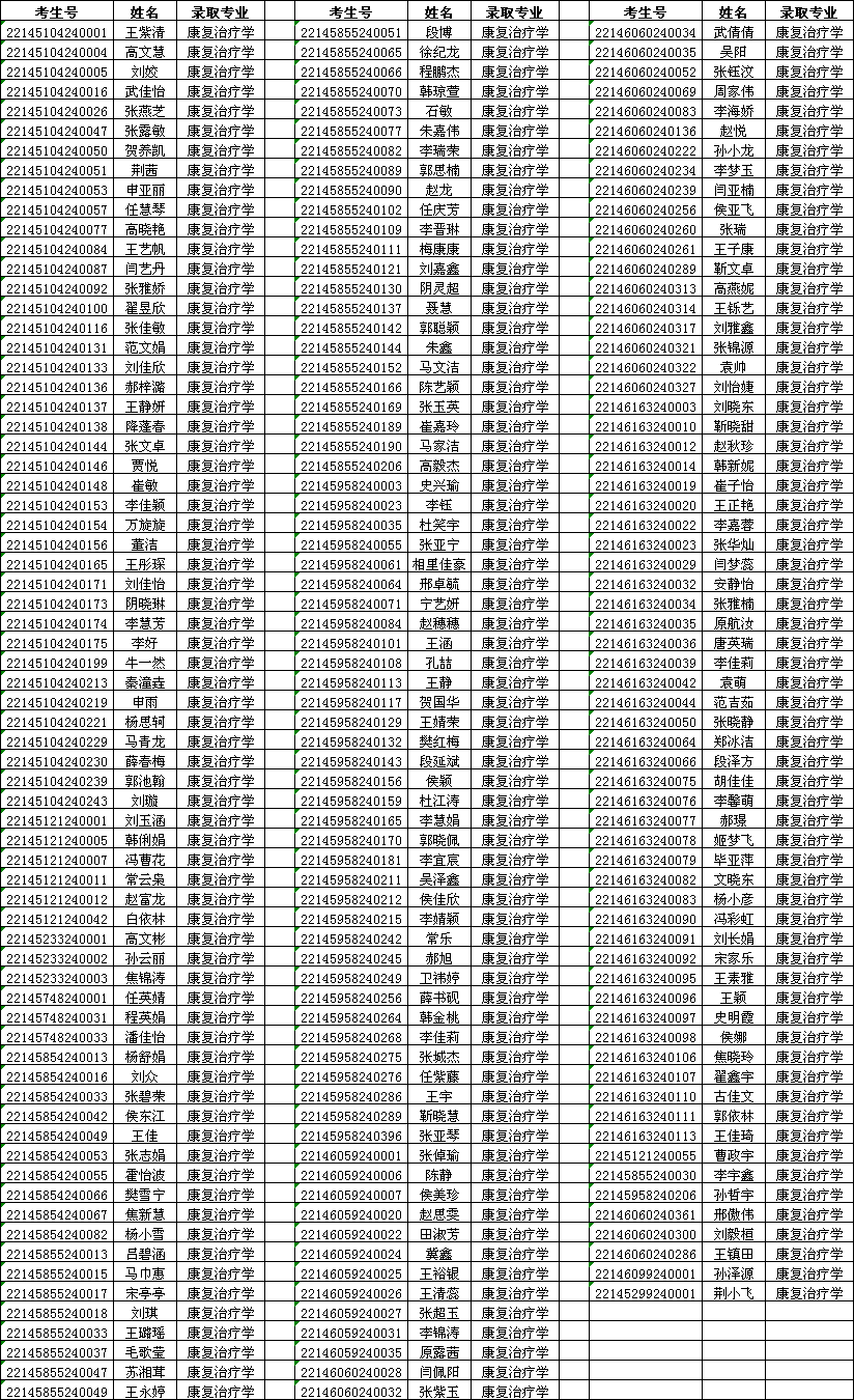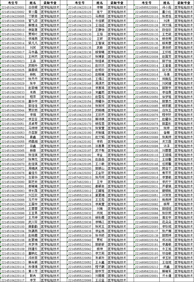 我校2022年专升本录取工作已顺利结束,免于文化课考试退役大学生士兵批、建档立卡专项批、普通批,三个批次共录取专升本新生882人,现将专升本各专业录取名单公布如下:
