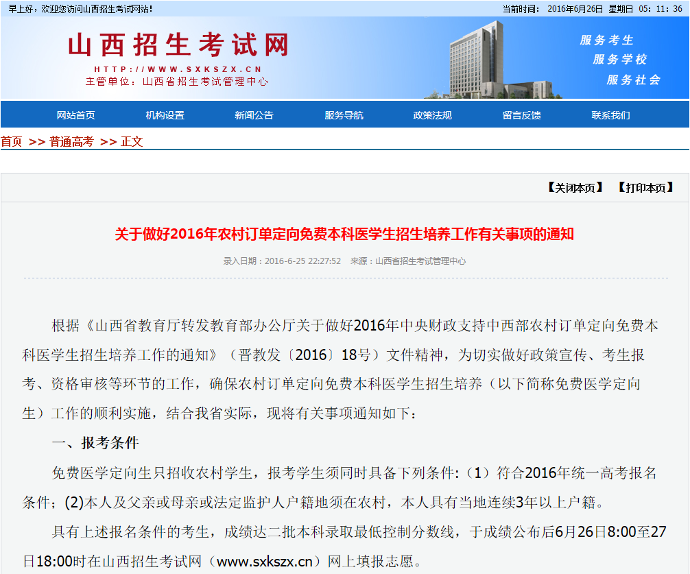关于做好2016年农村订单定向免费本科医学生招生培养工作有关事项的通知