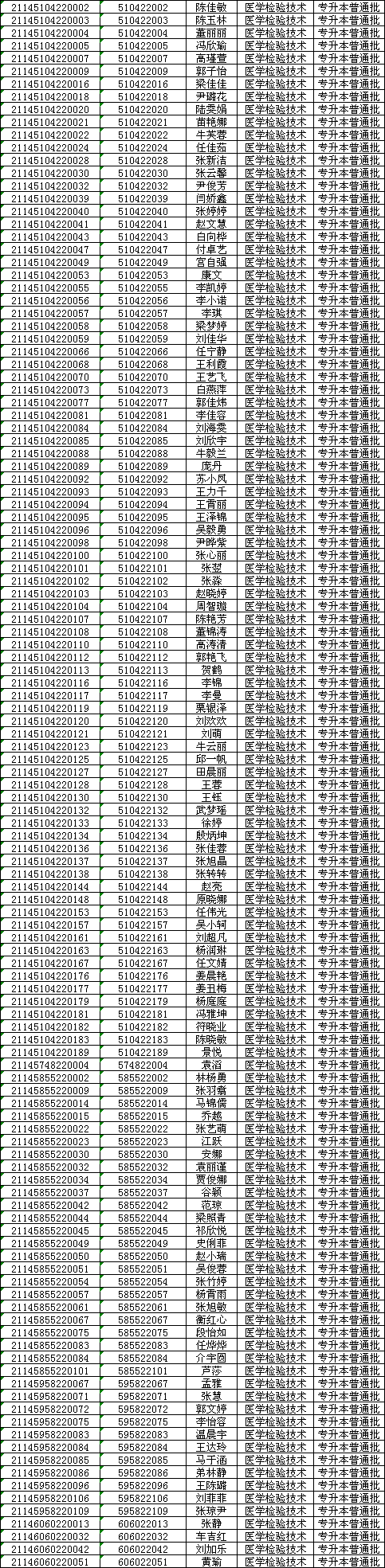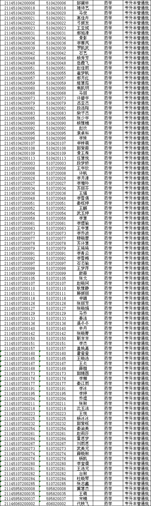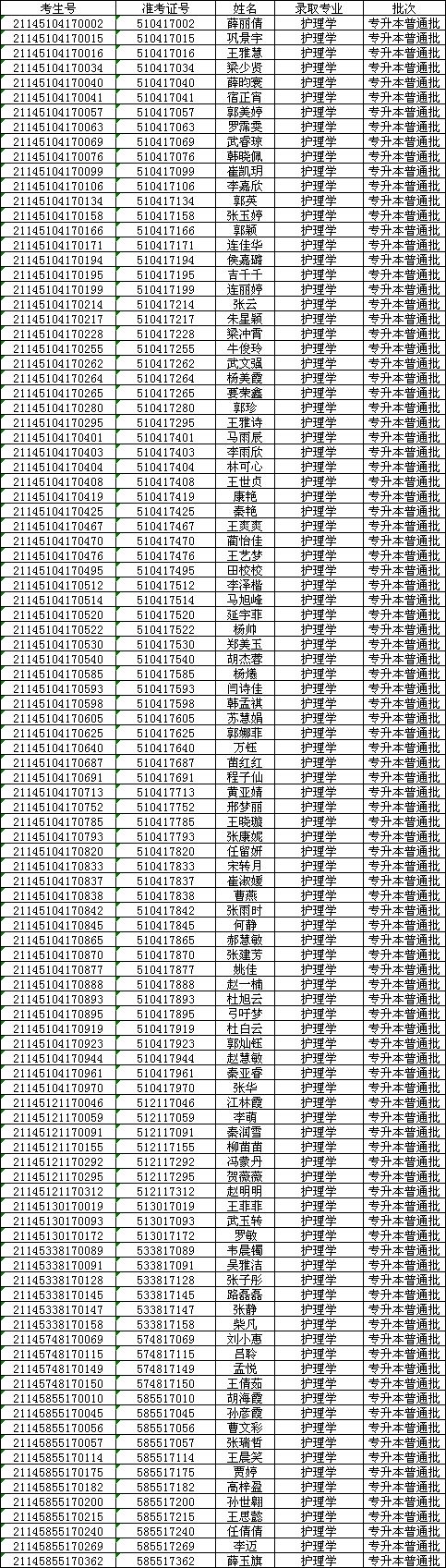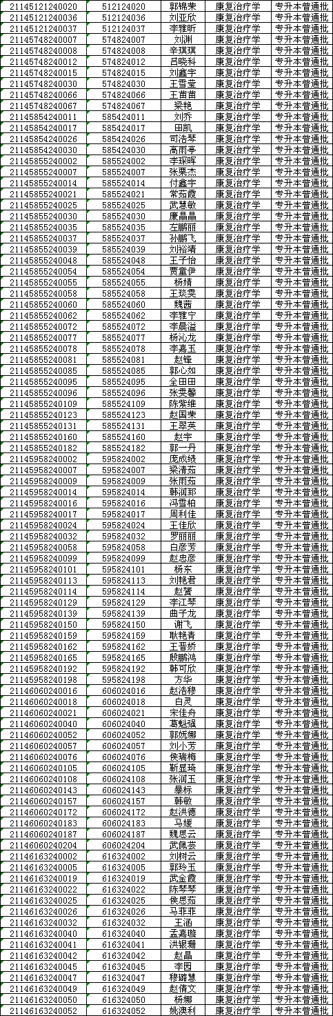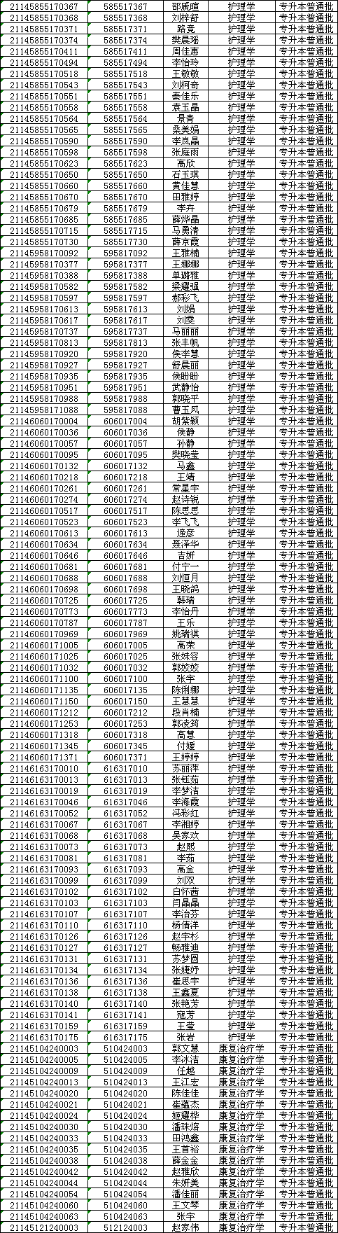 长治医学院2021年专升本普通批录取名单
