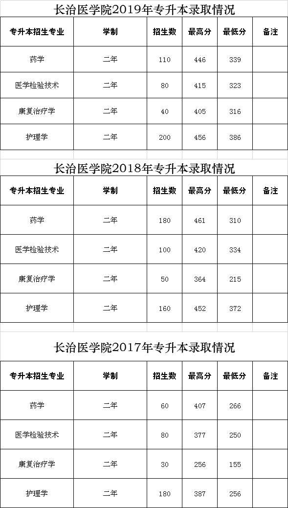 长治医学院近三年专升本录取情况