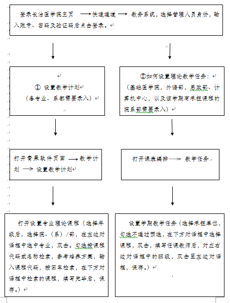 各专业、院、系、部、教研室,参考《长治医学院本科培养方案》和“2015-2016学年第二学期教学任务书”,做14级第四学期和15级第二学期的教学计划以及教学任务。《长治医学院本科培养方案》可在教务处网站下载中心下载。
