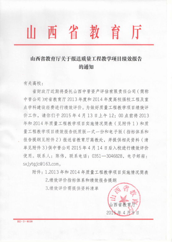 关于转发《山西省教育厅关于报送质量工程项目绩效报告的通知》及质量工程教学项目报告和表格填报要求的通知